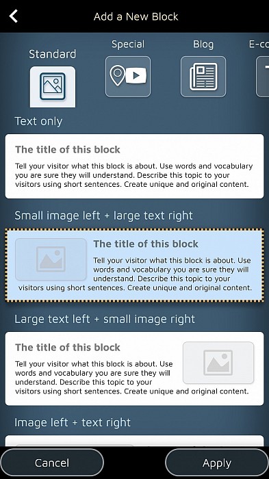 ఉచిత Starter సైట్, Smart సైట్ మరియు Pro సైట్.